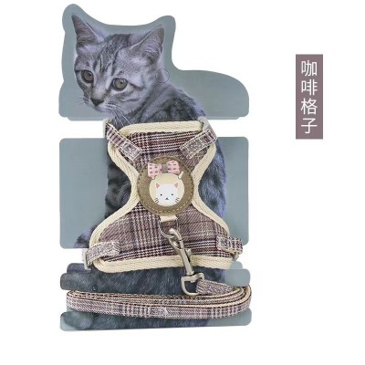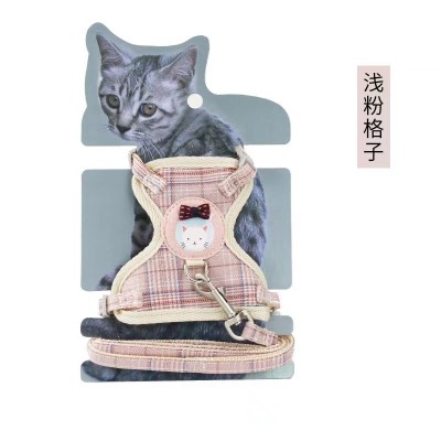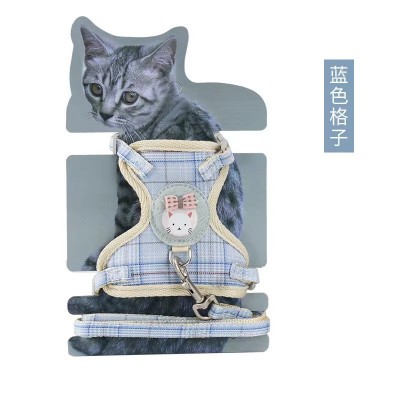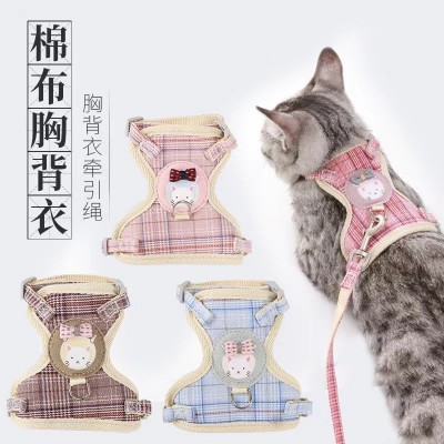 格子卡通熊尼龙网布猫咪胸背式牵引绳件